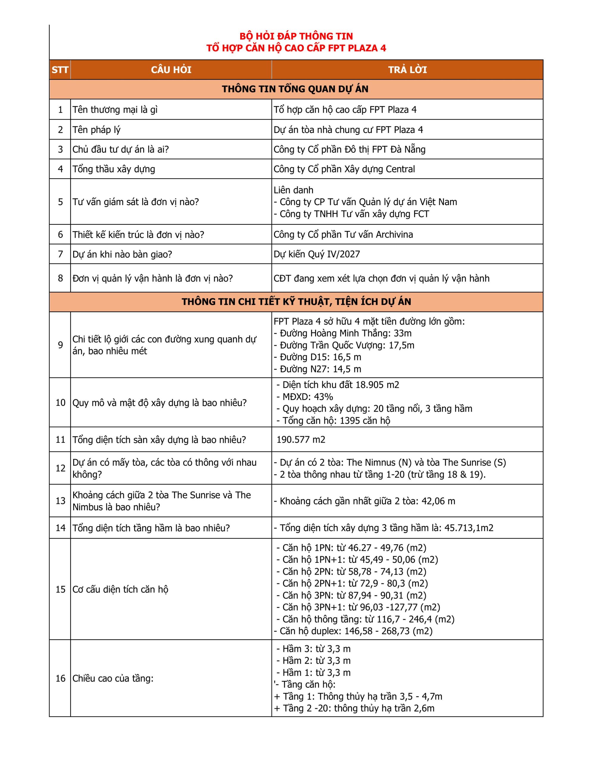1. Tổng hợp 60 câu hỏi về dự án căn hộ cao cấp FPT Plaza 4: