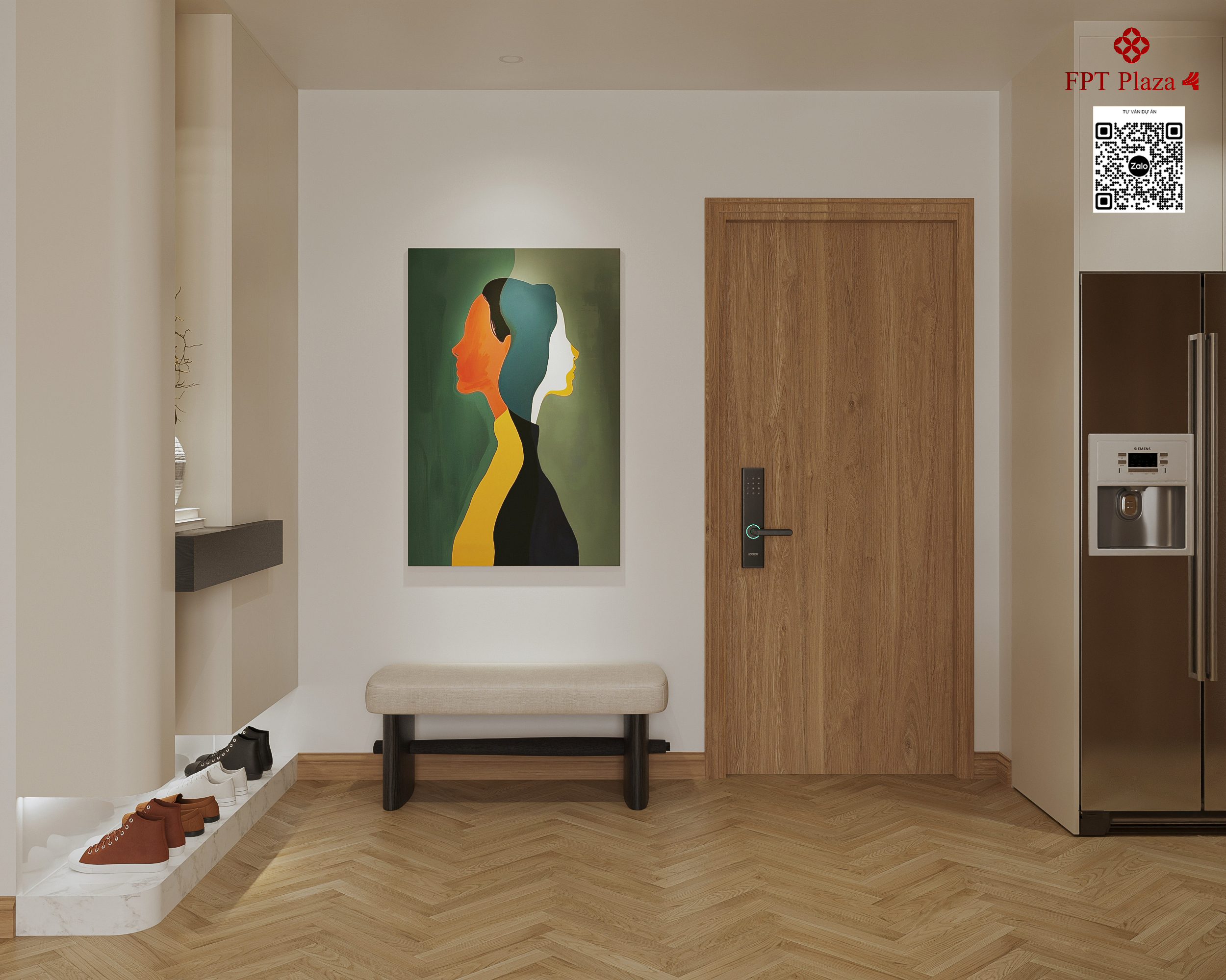 Bàn giao có khóa từ, sàn gỗ xương cá full phòng khách, phòng bếp