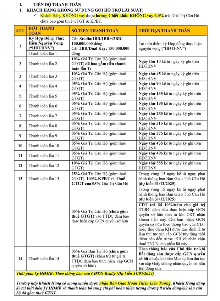 2. PTTT CÓ VAY (TỐI ĐA 70% GIÁ TRỊ CĂN HỘ)